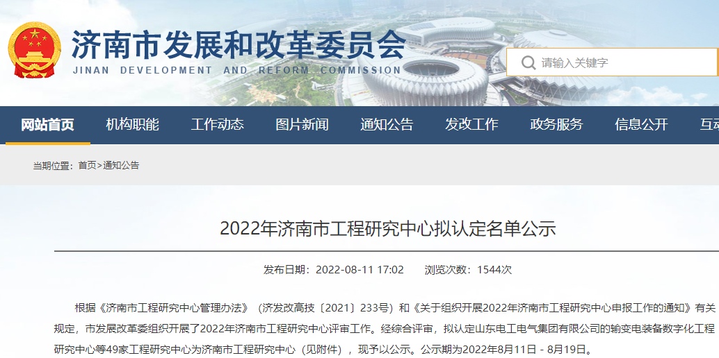 近日,济南市发展和改革委员会进行了2022年济南市工程研究中心拟认定名单的公示,济南迈克阀门科技有限公司认定为“高精密通用阀门济南市工程研究中心”。