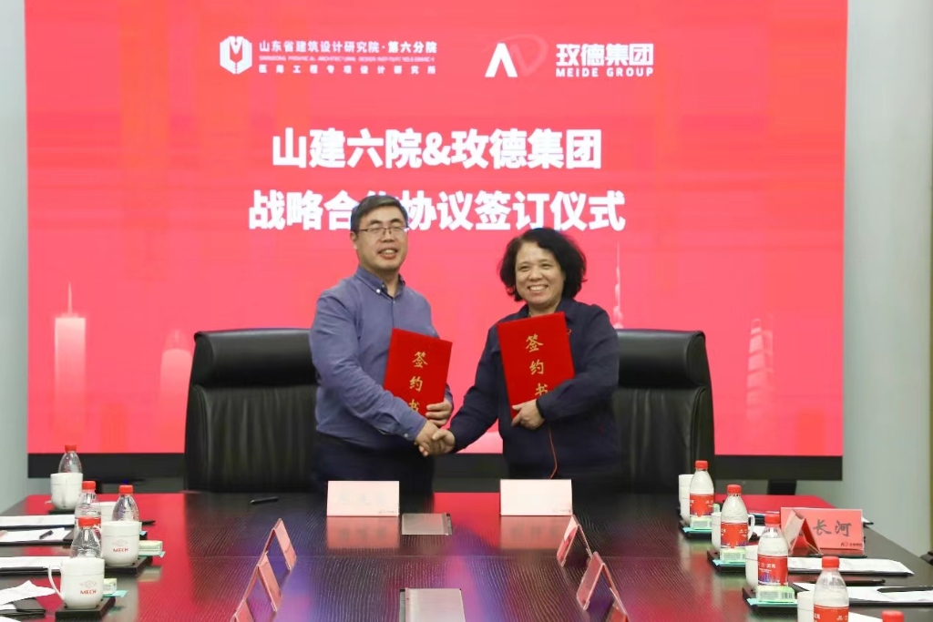 最后,双方领导正式签署战略合作协议,山建六院将与玫德集团在学术交流、技术培训等方面展开多维度、全方位的深度战略合作,通过优势互补,强强联合,助力双方共同创新发展,为相关建筑、建设单位和用户提供更加经济高效完善的解决方案和服务。