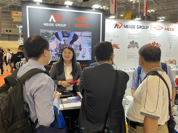 6月15日-18日,2023日本东京国际消防防灾展如期举办,展会为期4天, 玫德集团参展,重点展出消防领域解决方案及产品,为全球客户提供中美英德日澳韩全标准消防金属软管、碳钢卡压管件、阀门产品、玛钢沟槽管件、球铁螺纹管件等丰富的产品及安全、可靠的消防系统解决方案。