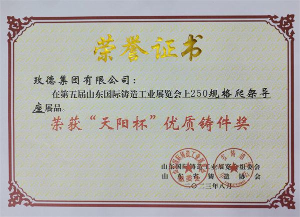 1.玫德集团有限公司展品“250规格爬架导座”荣获“优质铸件奖”。