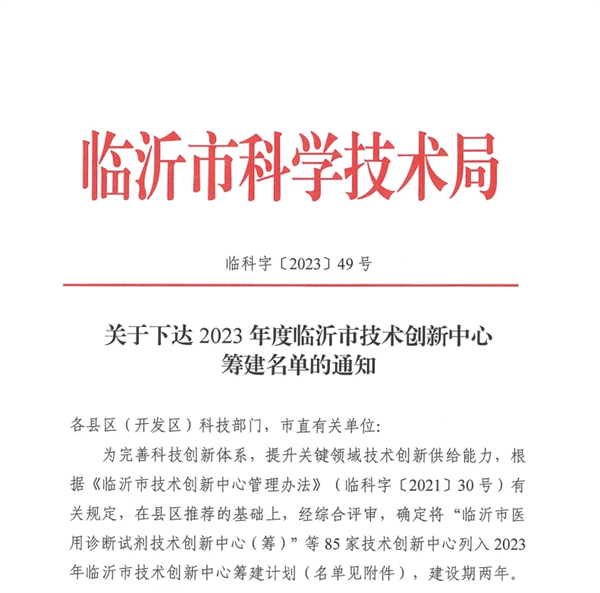 近日,临沂市科学技术局下发“2023年度临沂市技术创新中心筹建名单”,临沂玫德庚辰金属材料有限公司的“临沂市高端风电专用铁技术创新中心”成功入选。