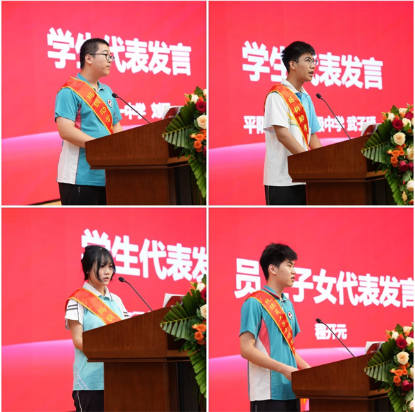 平阴一中刘旸、平阴实验高中武子硕、平阴工业学校王国庆和玫德集团员工子女程开元作为学生代表分别发言,诚挚感谢玫德集团的鼎力支持,感恩玛钢助学基金二十年如一日的守护。他们表示,无论身在何方,都会做家乡的宣传者,做玫德精神的传承者!