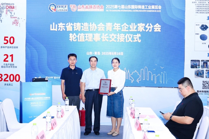 济南科德智能科技有限公司总裁刘少云参加山东省铸造协会青年企业家分会第四次代表会议,并当选为本届轮值理事长,展现了玫德集团在行业中的领导地位。