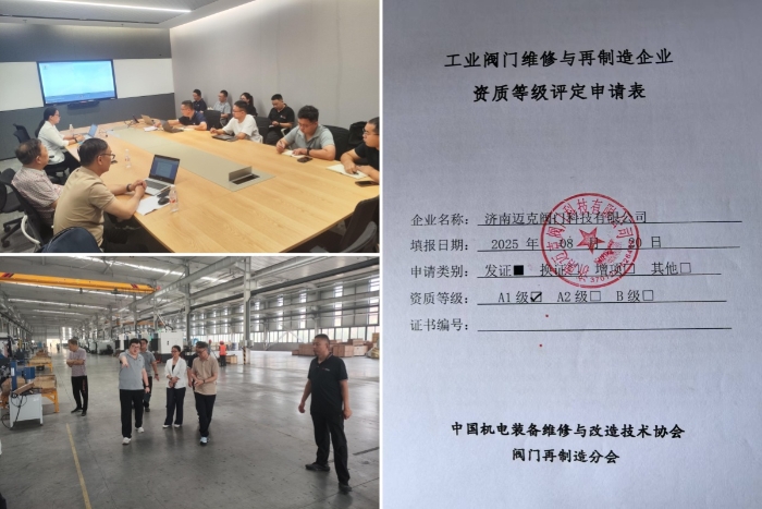 2025年8月20日,玫德集团向中机维协阀门再制造分会提交了“工业阀门维修与再制造企业资质等级评定申请表”,分别申请了:驱动/自动阀门、控制阀门、阀门驱动装置三个类别。2025年9月4日-5日,中机维协阀门再制造分会派遣专家评审组对玫德集团进行了运维、维修与改造资质现场评审。